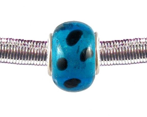 Made of murano style lampwork glass, these beads will fit all Pandora, Biagi, Chamilia, Troll and other similar style master bracelets. Simply slide them on as you would any other unthreaded bead. Core of bead measures approx 5mm and is rhodium plated for long-lasting wear. Bead itself measures 16mm (5/8") in diameter and 10mm (approx 3/8") wide.. Affordable enough to add many new beads to your own bracelet or create one for a special friend.