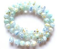 You are looking at one strand of handmade lampwork glass beads. These Millefiori glass beads are very attractive and sharp. They are good for necklace, bracelets and earrings. Each strand of beads is similar to the photo, but unique by design. millefiori = a kind of ornamental glass in which a number of rods of different colors are fused together and cut into sections which form various patterns, typically embedded in clear glass