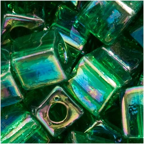 Miyuki 4mm Glass Cube Beads Transparent Emerald Green AB #179 10 Grams Feature