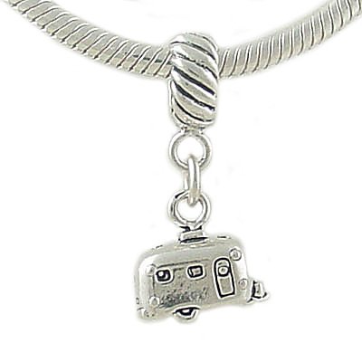 .925 Sterling Silver European Bead Dangle Charm. This .925 sterling silver retro travel trailer charm is perfect for the tin can tourist! Compatible with most 3mm Cable European Charm Bead Bracelets.