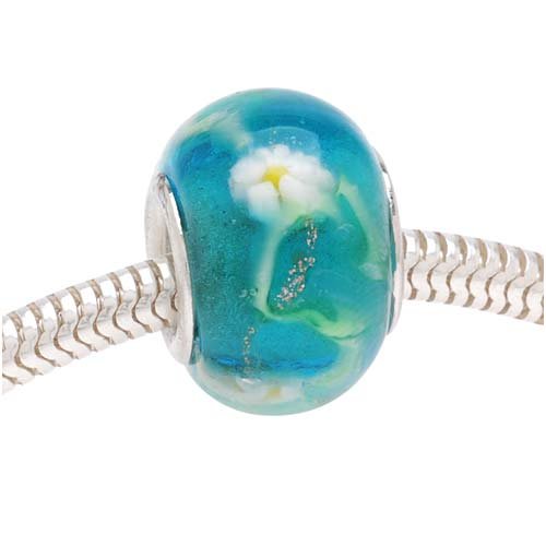 Murano Style Glass Lampwork Bead Fits Pandora Blue With White Daisies 14mm (1) Feature